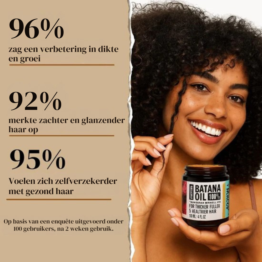 Met Batana Haar Olie herstel je de kracht en vitaliteit van je haar. Het voedt de haarwortels, stimuleert de groei en zorgt voor sterker, glanzender haar, zonder schadelijke chemicaliën.