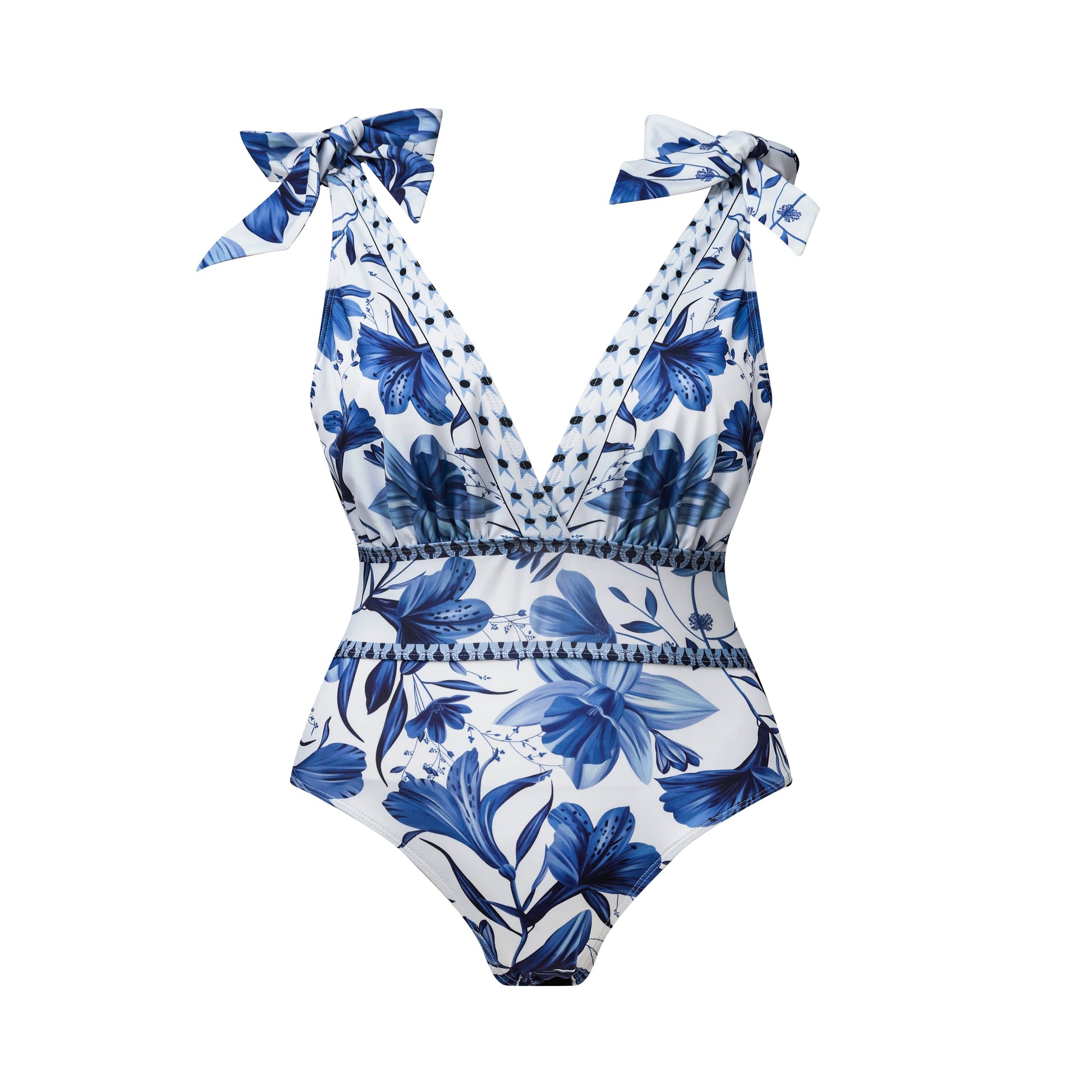 Stralend, stijlvol en moeiteloos elegant. De Celeste Fiora set combineert verfijnde zomerse allure met een vleugje Mediterrane charme. Het badpak met diepe V-hals en strikbandjes op de schouders biedt een vrouwelijke en flatterende pasvorm, terwijl de bijpassende zwierige rok het geheel transformeert tot een oogverblindende jurk-look. Perfect voor een dag aan het strand of een chique lunch aan zee.