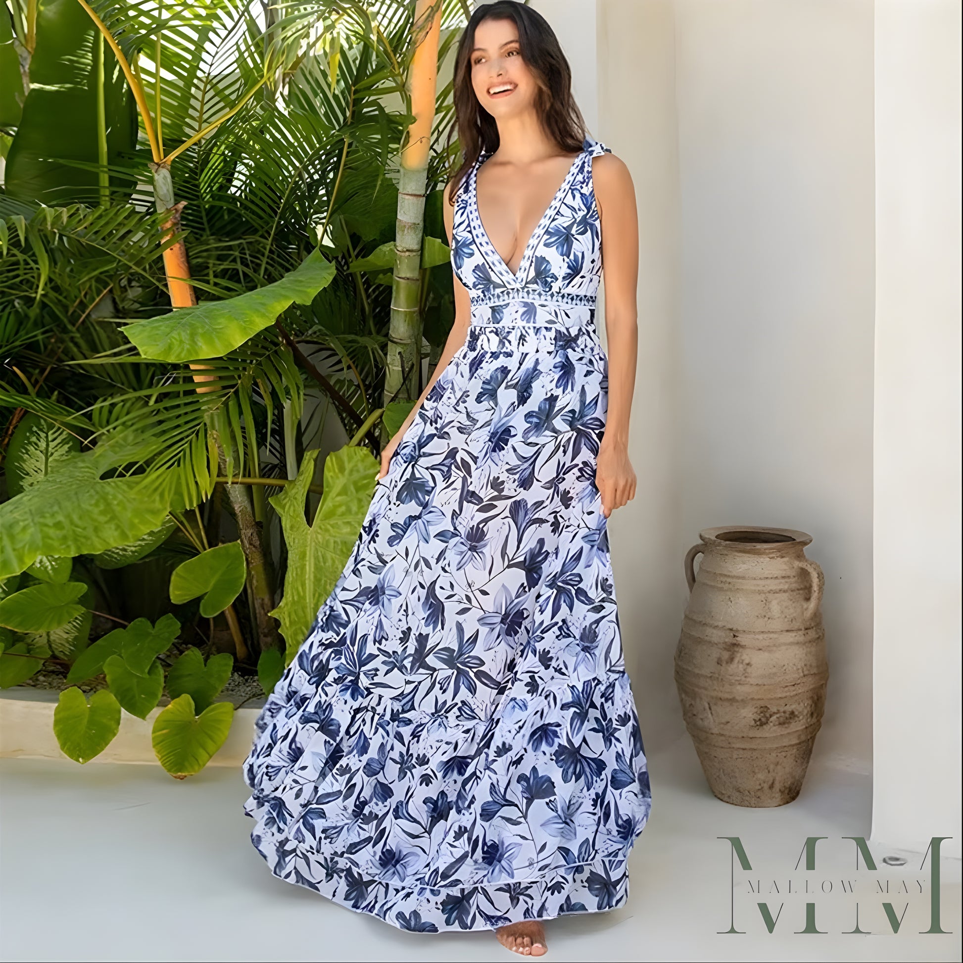 🎀Luxe bloemenprint in koningsblauw en wit voor een exclusieve uitstraling