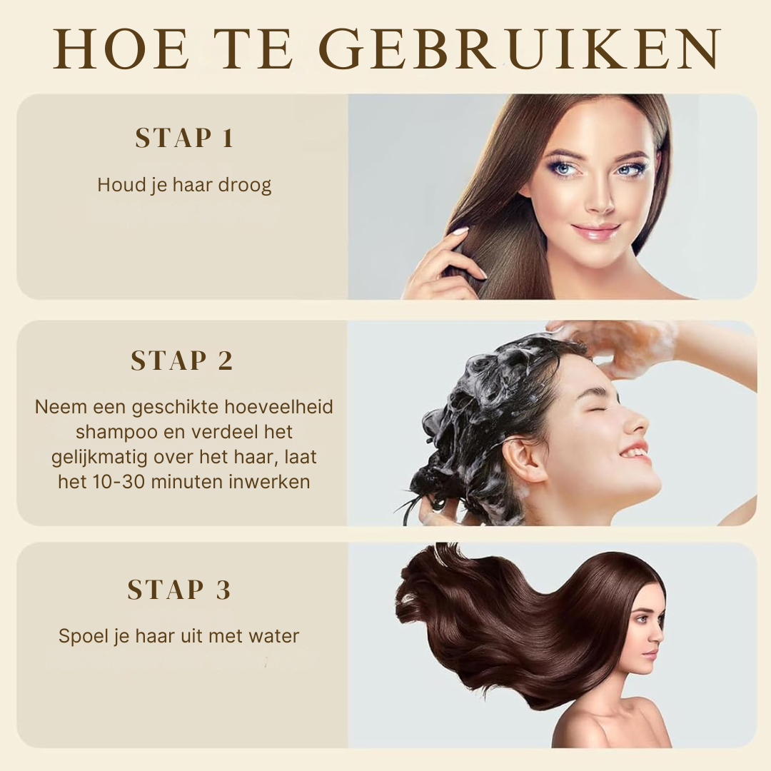 Ja, je brengt het aan als een normaal shampoo – geen mengen, geen handschoenen, geen rommel.