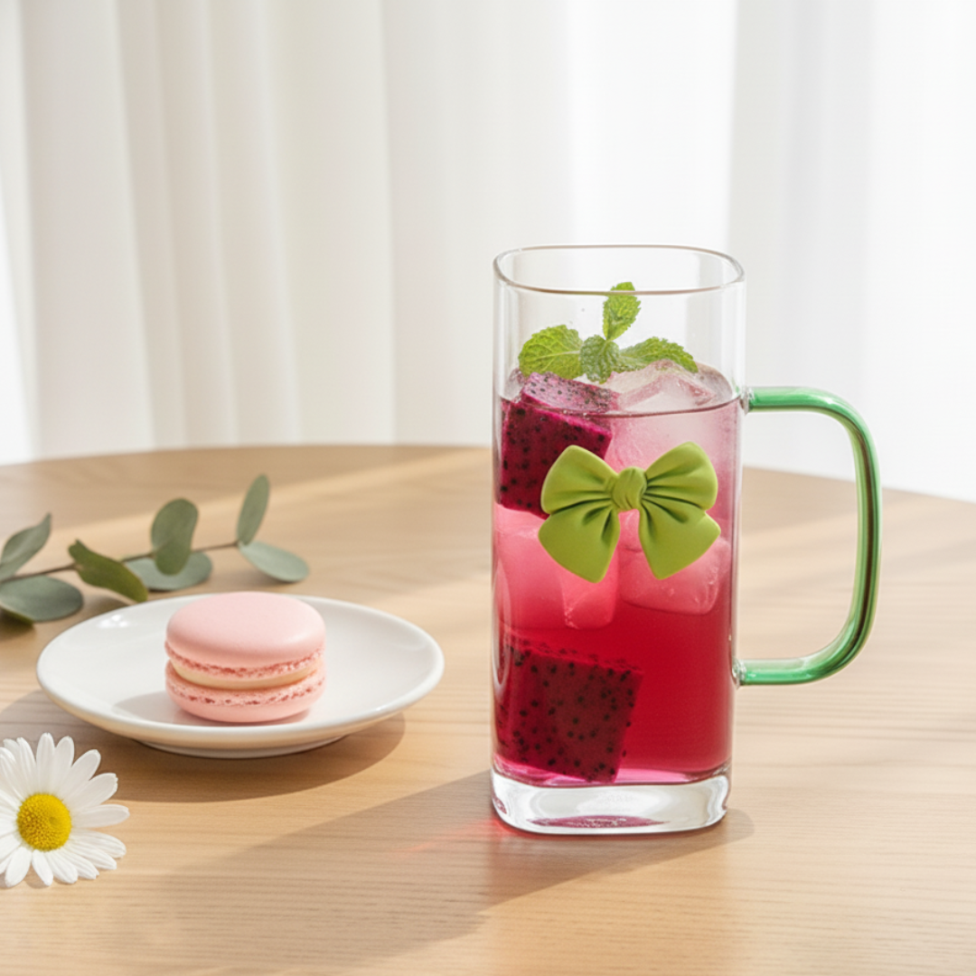 De Glazen Mok met Strik voegt een vleugje luxe toe aan je dagelijkse routine, waardoor elk drankje speciaal aanvoelt.Met haar roze strik en elegante glans maakt ze van elke ochtend een stijlvol prinsessenmoment vol charme en verfijning.