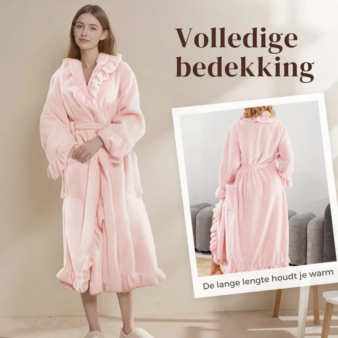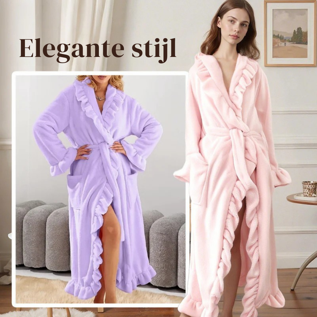 Ongeëvenaard comfort – De Zachte en Donzige Badjas omhult je in luxe en zachtheid, ideaal voor een ontspannen moment na het baden of ’s ochtends.